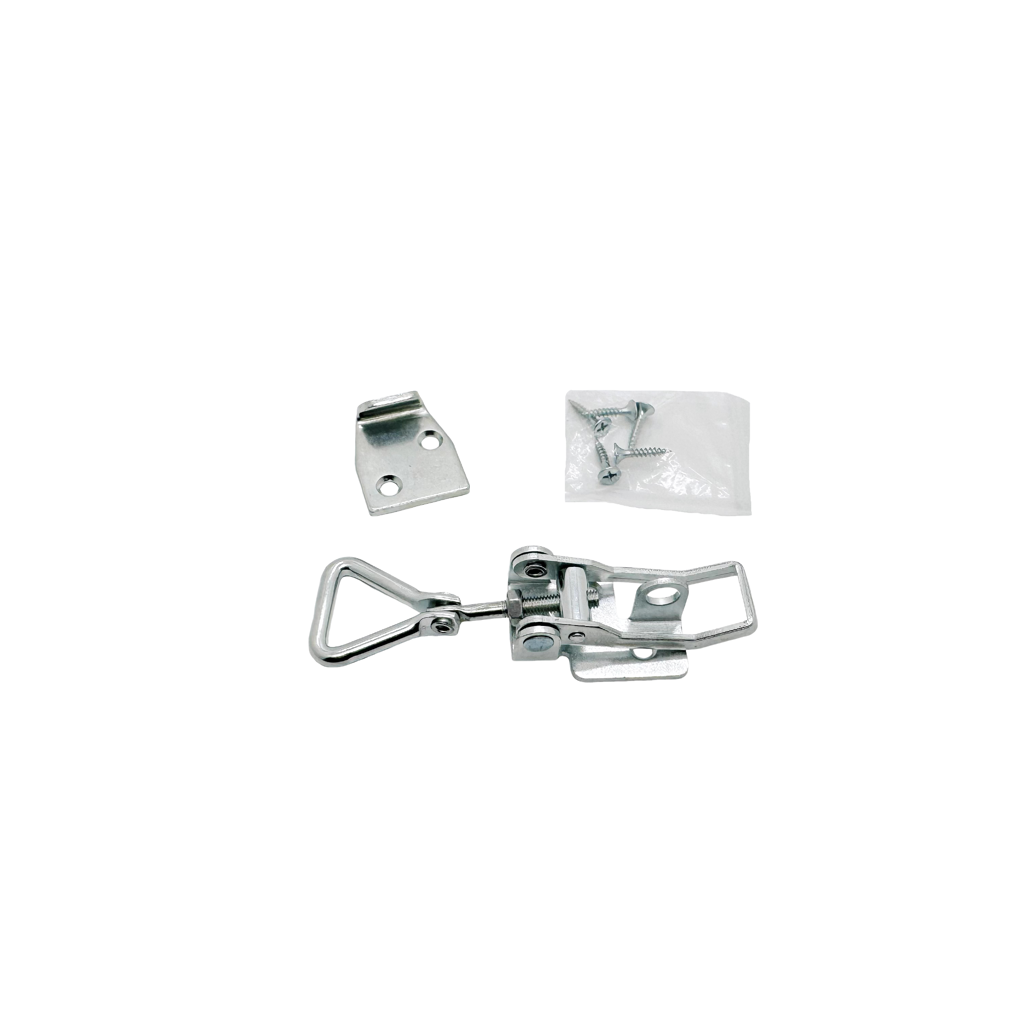 中号镀锌搭扣套装,含完整安装配件(扣板和安装螺丝)。与中号门搭扣为同款搭扣,区别在于本款含安装螺丝和扣板。适用于常规工具箱、设备箱、电气柜等中等载重应用。开箱即装。